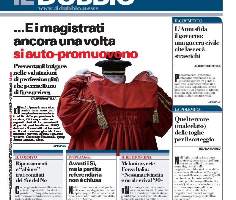 Il Dubbio, il quotidiano della società Edizioni Diritti e Ragione s.r.l. promanato dalla FAI Fondazione dell’Avvocatura Italiana e che ha fra le sue finalità la valorizzazione dell’avvocatura e la divulgazione dei diritti di difesa della persona, ha pubblicato un articolo nella rubrica “Il caso” dal titolo “Israele, in carcere la procuratrice che diffuse il video degli abusi sui detenuti palestinesi” che conclude con la seguente notizia che appare di non poco interesse per cui “Fonti anonime hanno raccontato a Haaretz che la giurista aveva evitato di aprire indagini su alcuni possibili crimini di guerra, come l’attacco aereo che il primo aprile 2024 uccise sette operatori della ONG World Central Kitchen, o l’esecuzione di quindici soccorritori gazawi a Rafah, il 23 marzo 2025. In entrambi i casi, avrebbe temuto il «linciaggio mediatico» dell’estrema destra. Ad agosto, durante una riunione, si era detta contraria all’invasione della città di Gaza, sostenendo che avrebbe solo aggravato l’isolamento politico e diplomatico di Israele.”